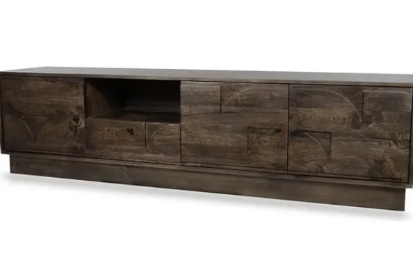 De TV-meubel is gemaakt van mangohout, een duurzame houtsoort. Mangohout kun je herkennen aan de vele kleurschakeringen en ongelijkheden in het oppervlakte van het hout, waardoor geen enkel meubelstuk hetzelfde is. De kleuren in mangohout kunnen variëren van licht- tot donkerbruine tonen.