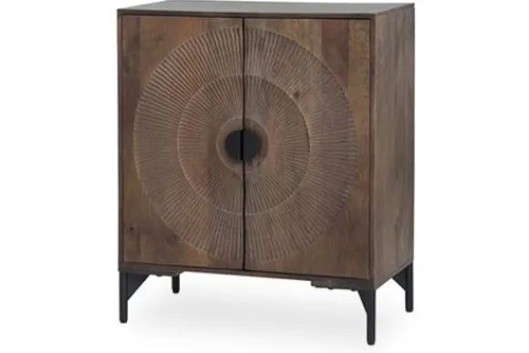 De metalen poten vormen een stoer contrast met het warme hout en geven het dressoir een moderne en industriële uitstraling. De combinatie van natuurlijke nerven en strakke lijnen maakt elk stuk uniek.