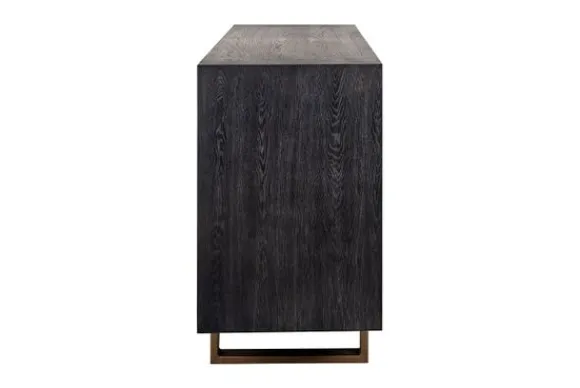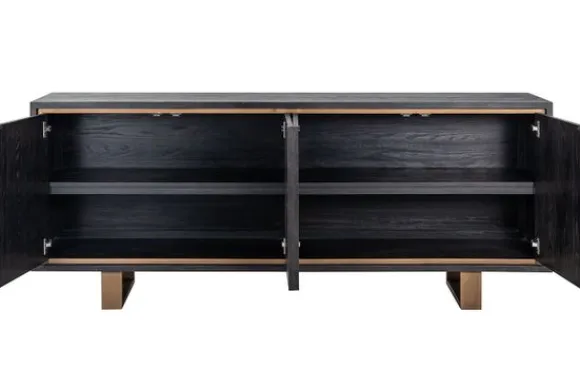 Dressoir Hunter 210476 van het merk Richmond Interiors is een kast die één en al moderne luxe uitstraalt! De kast is namelijk gemaakt van zwart gebeitst eiken met details van roestvrij staal die een antiek gouden kleur hebben. De kast heeft vier deuren waar in totaal vier opbergvakken achter zitten. Het dressoir is eenvoudig te onderhouden, als er een vlek op komt kan je deze eenvoudig wegdeppen met keukenpapier of een doek met wat water.