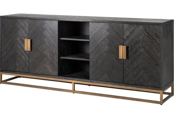 Dressoir Blackbone Brass 210693 van het merk Richmond Interiors is een elegant en stoer dressoir met voldoende opbergruimte. Het dressoir heeft vier deuren waar in totaal vier vakken achter zitten om al je spullen netjes op te kunnen bergen. In het midden bevinden zich drie open vakken om eventueel decoratie neer te zetten. Deze boekenkast past goed in hotel chic en industrieel gestijlde interieurs.