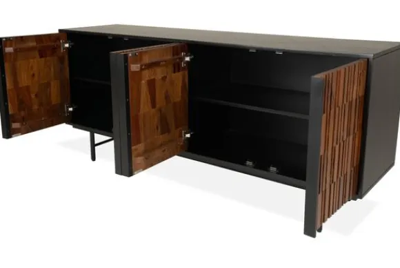 Dressoir Dimaro TA 0010 van het merk Tower Living is gemaakt van mangohout. Mangohout kun je herkennen aan de vele kleurschakeringen en ongelijkheden in het oppervlakte van het hout, waardoor geen enkel meubelstuk hetzelfde is. De kleuren in mangohout kunnen variëren van lichte- tot donkere tonen. Het dressoir heeft vier deuren om spullen in op te bergen.