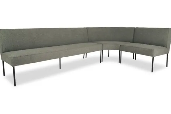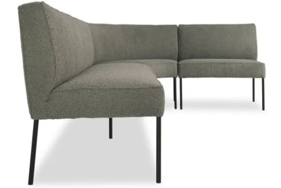 Eetkamerbank Clermont van het merk Bing is verkrijgbaar in alle kleuren en verschillende materiaalsoorten als stof, velvet en rundleder. Je kunt kiezen uit diverse afmetingen. Het is een moderne, ovale hoek eetkamerbank met strakke, eenvoudige vormen. De eetkamerbank, heeft smalle, ronde poten en een rechte leuning. Ideaal voor bijvoorbeeld aan je eettafel.