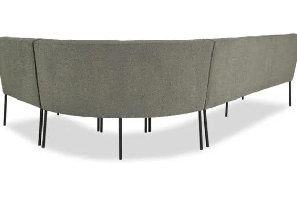 Eetkamerbank Clermont is een elementenbank waardoor je je eigen eetbank samen kunt stellen. De losse elementen zijn koppelbaar door middel van een krokodillenbek. Een krokodillenbek is een verbindingsstuk om de elementen aan elkaar te kunnen schuiven. De opstelling van deze eetkamerbank is 4,5 (200cm) + hoek rond (90 cm) + 1,5 (80 cm) en wordt standaard geleverd met zwarte metalen poten. Liever een andere kleur poot of opstelling? Maak de eetkamerbank naar je eigen stijl door bij “stel jouw eetbank” je pootkleur en/of opstelling uit te kiezen.
