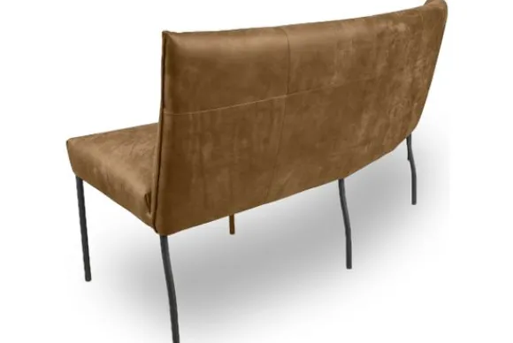 Deze eetbank wordt standaard geleverd met zwarte rechte poten en een geknepen naad. Er kan gekozen worden voor andere poten of een dichte naad onder “Kies je extra’s”.