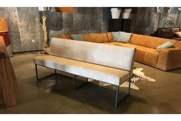 Eetkamerbank Fun van het merk Divani is verkrijgbaar in alle kleuren en in materiaalsoorten zoals stof en rundleder. Je kunt kiezen uit diverse afmetingen en pootmogelijkheden. De poot loopt door onder de zitting van de eetbank, verder loopt de middelste poot iets minder ver door naar voren dan de twee buitenste poten. Deze Fun eetbank is standaard uitgevoerd met een dichte naad. Onder het kopje “extra opties” kun je kiezen voor een geknepen naad of dichte naad. De eetbank is voorzien van gladde rug met soms een verticaal stiksel.