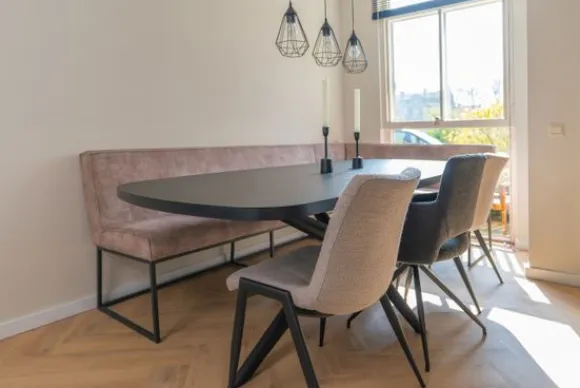 Eetkamerbank Fun van het merk Divani is verkrijgbaar in alle kleuren en in materiaalsoorten zoals stof en rundleder. Je kunt kiezen uit diverse afmetingen en pootmogelijkheden. De poot loopt door onder de zitting van de eetbank, verder loopt de middelste poot iets minder ver door naar voren dan de twee buitenste poten. Deze Fun eetbank is standaard uitgevoerd met een dichte naad. Onder het kopje “extra opties” kun je kiezen voor een geknepen naad of dichte naad. De eetbank is voorzien van een gladde rug.