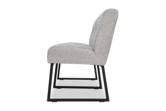 Deze eetbank is voorzien van zwart metalen poten en blokstiksels in de rugleuning. De Bullock is ook beschikbaar met andere stiksels in de rug. Deze eetbank heeft een simpel, elegant design. Twee handgrepen achter op de rugleuning zijn optioneel.