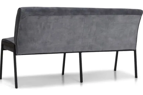 Deze eetkamerbank komt met een gladde rugleuning en met metalen rechthoekige poten afgewerkt met kunstof dopjes.