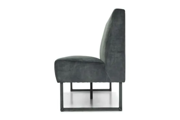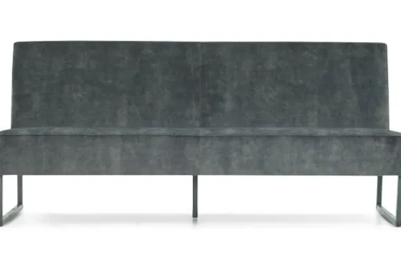 Deze eetkamerbank komt met een dichte naad, metalen sladepoot, gladde rugleuning en dichte voor- en achterkant. Deze eetbank wordt geleverd met een extra steunpoot in het midden vanaf een breedte van 220 cm tot 250 cm, vanaf 250 cm komt er een extra sledepoot in het midden.