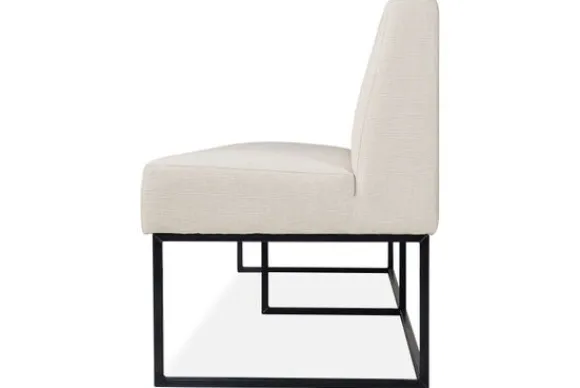 Eetkamerbank Porta van het merk Dutch Design is een stijlvolle eetkamerbank met een gladde rug. Eetbank Porta wordt standaard geleverd met zwart metalen poten.