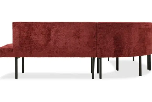 Hoekeetbank Van Zanten van het merk Dutch Design is beschikbaar in verschillende afmetingen en in alle kleuren en verschillende materiaalsoorten zoals teddy, velvet en rundleder. Het hoekmodel creëert een knusse en sociale opstelling, perfect voor lange avonden tafelen en levendige gesprekken. Het strakke lijnenspel van de rugleuning en zitting geeft de bank een moderne uitstraling, terwijl de subtiel afgeronde hoek zorgt voor een zachte visuele flow. De hoge rug biedt extra comfort en ondersteuning, ideaal voor wie elegantie wil combineren met functioneel zitgemak. De slanke metalen poten zorgen voor een luchtige basis en versterken het minimalistische silhouet. De eilanden van deze bank zijn 20 cm breed.