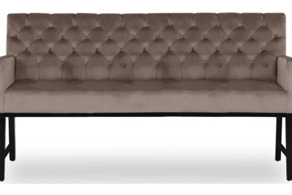 Eetkamerbank Montreal van het merk Rebel en Classic is beschikbaar in alle kleuren en in verschillende materiaalsoorten zoals stof, velvet, microvezel en rundleder. Daarnaast kun je kiezen uit verschillende afmetingen en diverse pootkleuren. Deze eetbank is voorzien van houten poten, er loopt ook nog een rand hout onder de zitting door. Deze uitvoering van de Montreal is gecapitonneerd in de rugleuning.