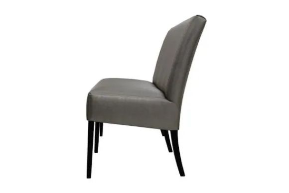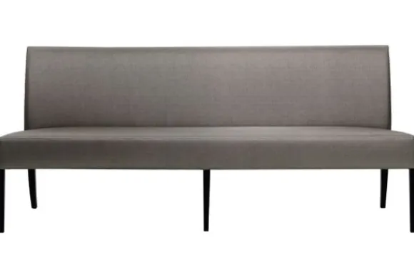 Deze eetbank wordt standaard uitgevoerd met een houten poot in de kleur zwart, een gecapitonneerde rugleuning en zonder handgreep.
