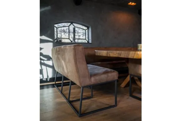 Eetkamerbank Fun van het merk Divani is verkrijgbaar in alle kleuren en in materiaalsoorten zoals stof en rundleder. Je kunt kiezen uit diverse afmetingen en pootmogelijkheden. De poot loopt door onder de zitting van de eetbank, verder loopt de middelste poot iets minder ver door naar voren dan de twee buitenste poten. Deze Fun eetbank is standaard uitgevoerd met een geknepen naad. Onder het kopje “extra opties” kun je kiezen voor een open naad of dichte naad. De eetbank is voorzien van een gladde rugleuning met soms een verticaal stiksel.