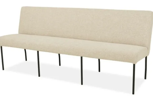 Deze eetkamerbank wordt standaard uitgevoerd met een dichte naad met een verticaal stiksel en metalen poten. Maak de eetkamerbank naar jouw eigen stijl voor bij ‘”Stel jouw eetkamerbank samen” te kiezen voor een andere bekleding en/of kleur, een geknepen naad en/of een sledepoot.