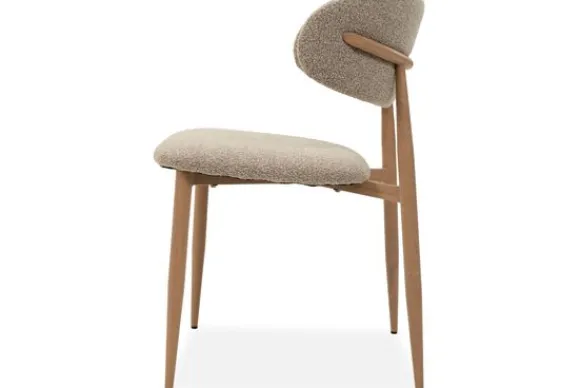 Eetkamerstoel Kaito van het merk Plix is een stijlvolle stoel met een warme en natuurlijke uitstraling. De zachte boucle beige bekleding in combinatie met het lichte onderstel zorgt voor een frisse en luchtige look.