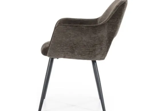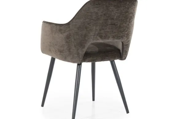 Eetkamerstoel Esmee Bruin Mellow 95934 van het merk Eleonora is gemaakt van polyester. De fraaie uitsparing in de rugleuning geeft de stoel een luchtig en speels karakter. De zwarte, naar buiten staande poten zorgen ervoor dat de stoel lekker stabiel op de grond staat en draagt daarnaast bij aan de leuke speelse touch.