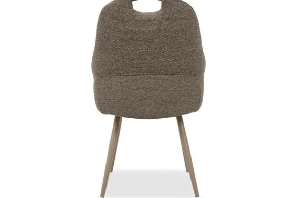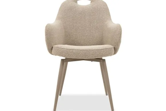 Eetkamerstoel Cronos van het merk Elysia is een comfortabele stoel met een handvat bovenaan de rugleuning. De ronde kuip sluit mooi aan en de armleuningen geven fijne steun.