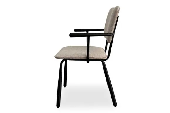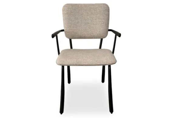 Eetkamerstoel Finn van het merk Livingfurn straalt verfijnd design uit met zijn slanke, zwart stalen onderstel en armleuningen. De lichte stof zorgt voor een frisse, moderne uitstraling die perfect past in elke eetkamer. Comfort en stijl worden moeiteloos gecombineerd in deze elegante stoel.