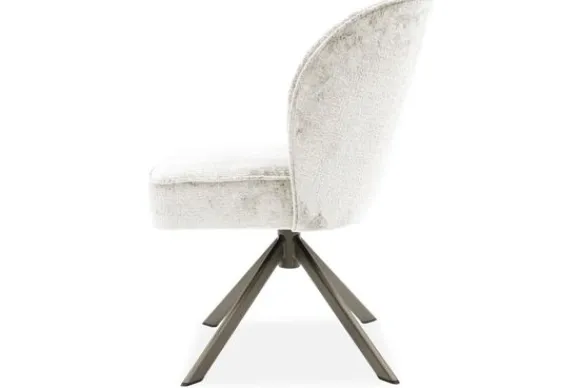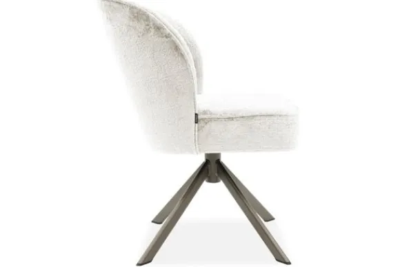 Er is ruime keuze in pootopties. Je kunt kiezen voor vaste houten poten in veel houtkleuren, metalen poten in diverse tinten of een elegante houten rand onder de zitting. De poot op de afbeelding is 360 graden draaibaar én heeft een autoreturnsysteem: na het draaien keert de stoel vanzelf terug naar de oorspronkelijke recht-voor-stand.