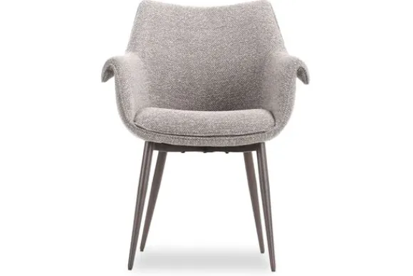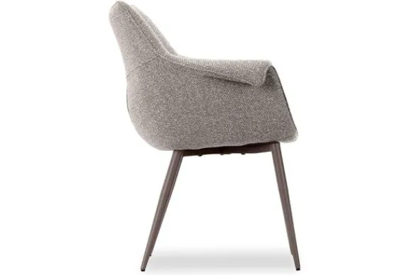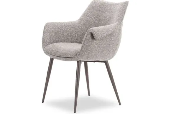 Eetkamerstoel Mirai DX-74.062 van het merk Label51 is een praktische stoel met metalen poten en doorgestoffeerde armleuningen. De stoel is bekleed met de zachte stof Royal Boucle Mushroom 170.