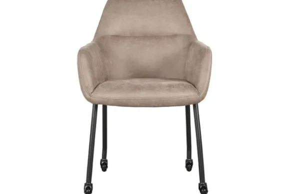 De eetkamerstoel, gestoffeerd met taupe kleurig micro suède, heeft een forse zitting met armleuningen, wat bijdraagt aan het hoge comfort van de stoel. Lenny is extra handig omdat deze stoel voorzien is van wieltjes en een handvat aan de achterkant van de rugleuning. De combinatie van de wielen en het greepje zorgen ervoor dat de Lenny een mobiele eetstoel is, die heel gemakkelijk is aan te schuiven aan de eettafel. Kortom, Lenny is de perfecte eetkamerstoel voor wie op zoek is naar een handige én comfortabele eetkamerstoel, met een moderne uitstraling.