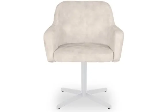 Eetkamerstoel Vance van het merk Caggia is verkrijgbaar in alle kleuren en verschillende materiaalsoorten als stof, rundleder en velvet. Deze eetkamerstoel heeft een uitnodigend ontwerp met ronde vormen en comfortabele armleuningen. Dankzij de 360 graden draaibare zitting is hij niet alleen stijlvol, maar ook heel praktisch in gebruik, ideaal voor lange diners of gezellige momenten aan tafel.
