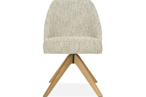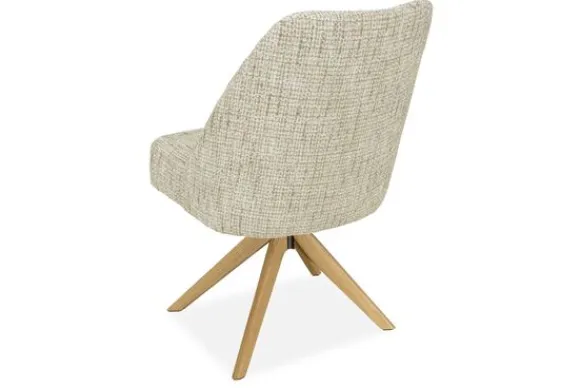 De eetkamerstoel is leverbaar met verschillende pootopties. Je kiest uit diverse houtkleuren zoals beuken, eiken, walnoot of zwart. Ook zijn er metalen draaipoten mogelijk in meerdere tinten. Zo stel je de stoel samen zoals hij past bij jouw tafel en ruimte.