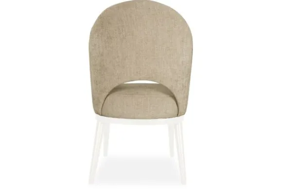 Eetkamerstoel Rohan van het merk Bellagio Seats heeft een ronde rug die mooi om de zitting valt. Het open detail onderin geeft de stoel een lichte en speelse uitstraling die zich makkelijk laat combineren met veel verschillende eettafels.