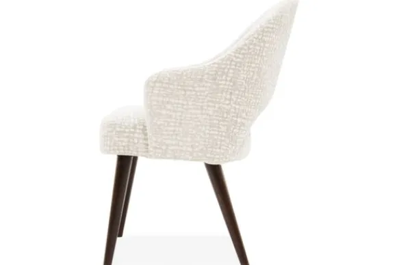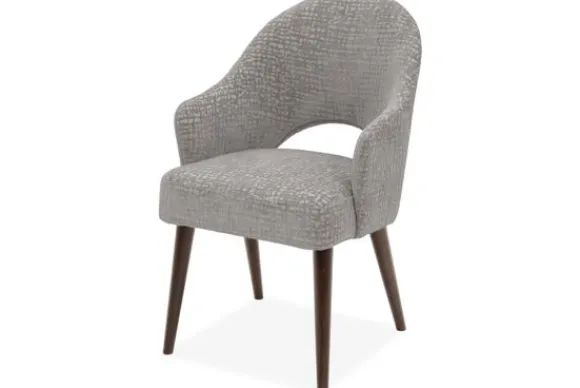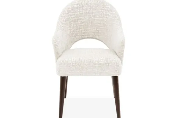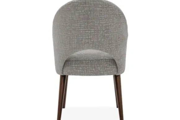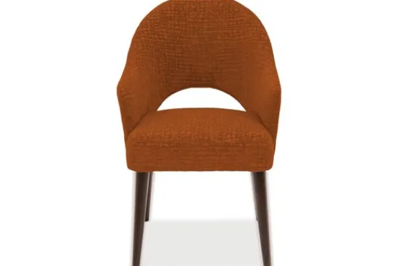 Eetkamerstoel Rohan van het merk Bellagio Seats heeft een ronde rug die de zitting mooi omarmt. De opening onderaan de rugleuning geeft de stoel een speelse touch.