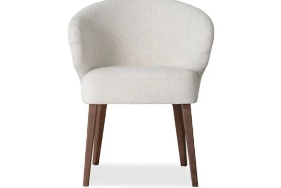 Eetstoel Rovanni heeft een zachte, afgeronde vorm die uitnodigt om aan te schuiven. De armleuningen lopen vloeiend over in de rug en geven extra steun. Dankzij het compacte formaat past deze stoel gemakkelijk aan verschillende tafels.