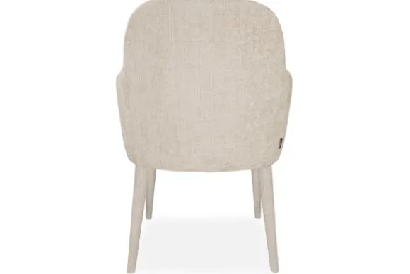 De vier slanke poten zijn volledig doorgestoffeerd, wat zorgt voor een strakke, uniforme uitstraling en een luxueus gevoel. Dit detail geeft de stoel een rustige en zachte look, zonder in te leveren op stevigheid en stabiliteit.