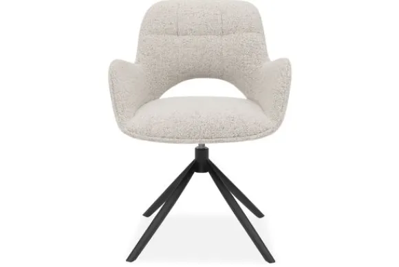 Het zwarte metalen onderstel geeft de stoel een stoer accent en zorgt voor een stabiele basis.