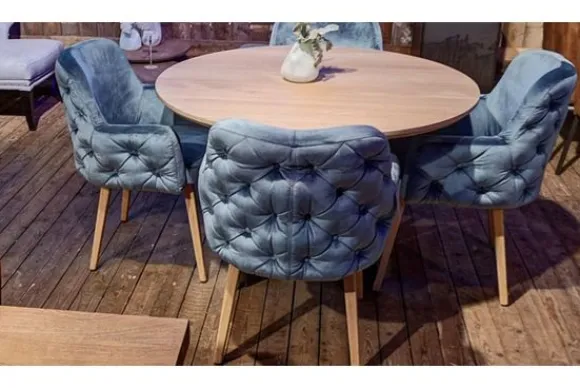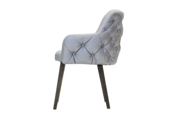Deze stoel wordt standaard uitgevoerd met houten poten in de kleur koloniaal.