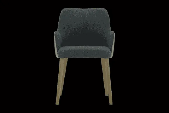 Deze stoel wordt standaard uitgevoerd met houten poten in de kleur mice grey.
