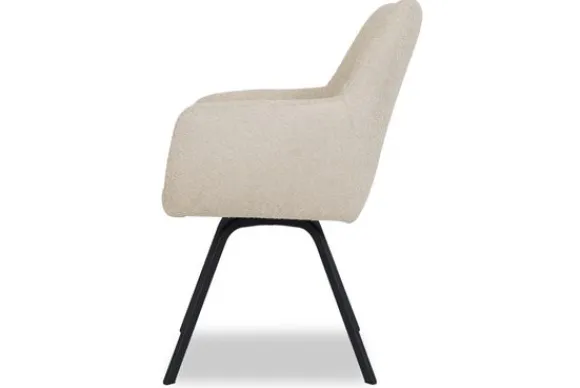 De eetkamerstoel wordt standaard geleverd met mat zwarte, gebogen, stalen poten, onder de tab “Kies je extra’s” kan je kiezen voor alternatieve stoelpoten.