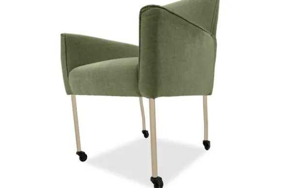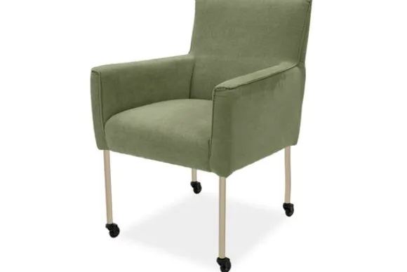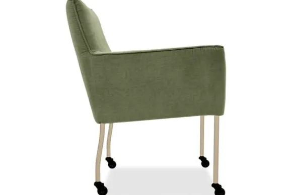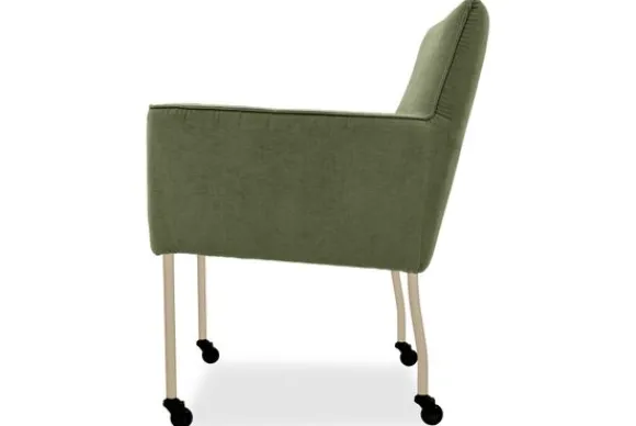 Eetkamerstoel Nikki is verkrijgbaar met of zonder armleuningen en met verschillende pootopties, waaronder wieltjes.