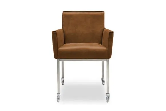 Eetkamerstoel Fun van het merk Divani is verkrijgaar in alle kleuren. Tevens is de stoel leverbaar in verschillende materiaalsoorten zoals stof, kunstleder en rundleder. Je kunt kiezen uit diverse pootmogelijkheden. Deze stoel wordt standaard uitgevoerd met een RVS kleurige poot met skatewieltjes en met een bekleede armleuning. Deze Fun stoel is afgewerkt met geknepen naden.