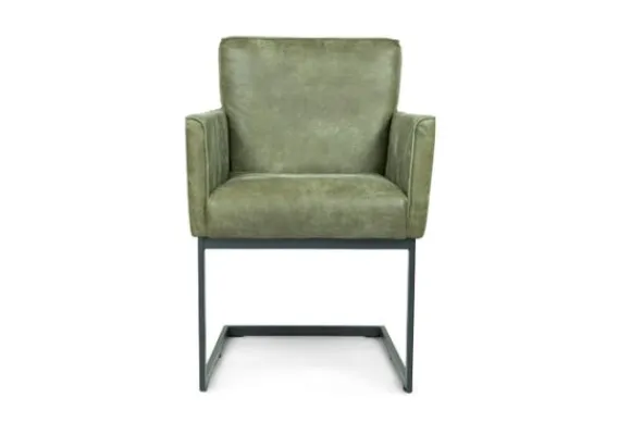 Eetkamerstoel Fun van het merk Divani is verkrijgaar in alle kleuren en verschillende materiaalsoorten als stof, rundleder en kunstleder. De stoel heeft open naden en een metalen poot wat voor een stoere uitstraling zorgt.