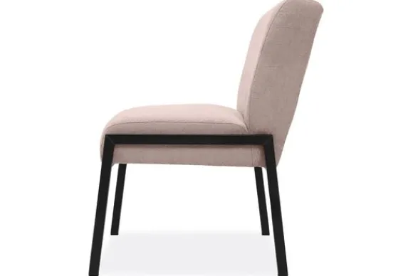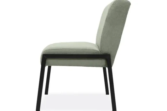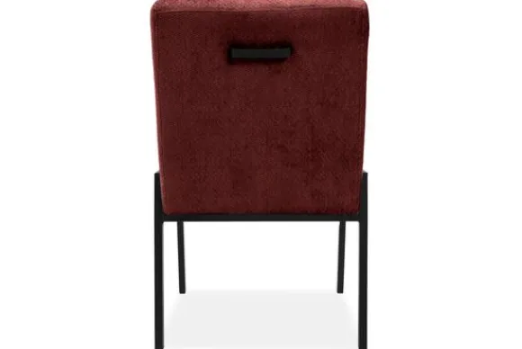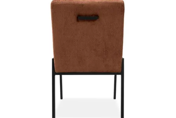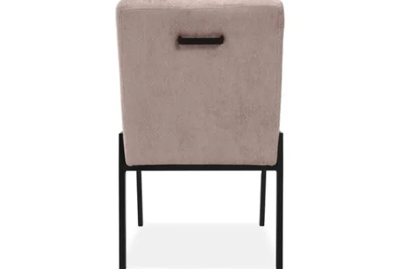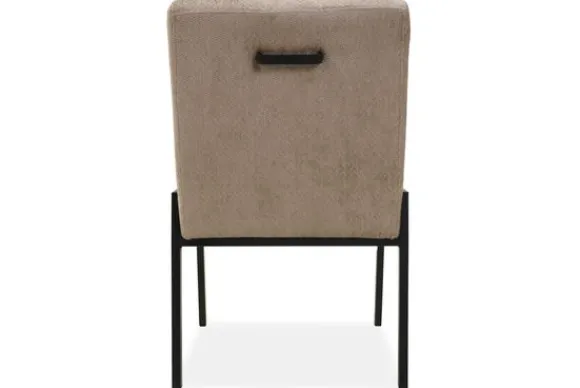 De stoel is op de foto uitgevoerd in een gladde stof zonder reliëf, maar je kunt ook kiezen voor varianten met structuur. Daarnaast bepaal je zelf of je een handgreep aan de achterkant wilt of liever een strakke, rustige rug behoudt. Zo stel je de stoel samen op een manier die past bij jouw ruimte en woonwensen.