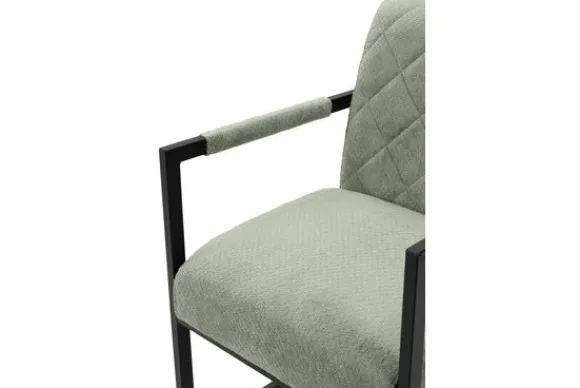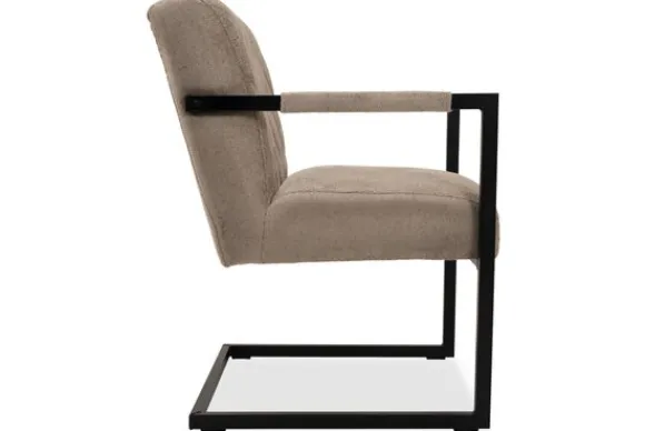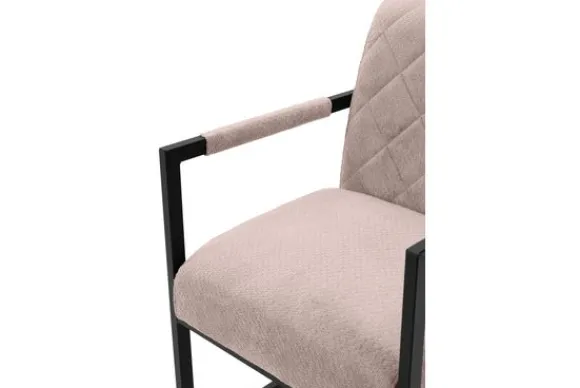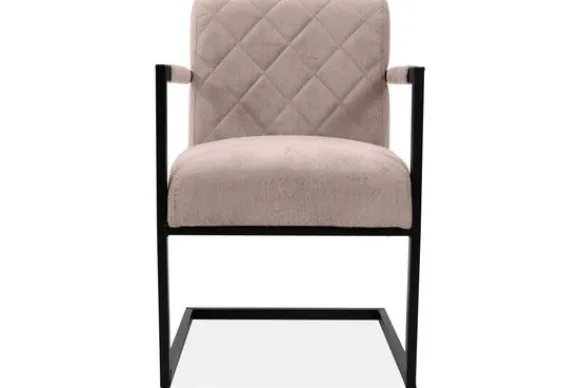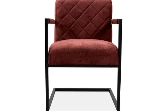 De stoel is volledig naar wens samen te stellen. Je kiest zelf of je armleuningen wilt, een handvat op de rug en welk patroon de bekleding krijgt. Daarmee maak je een uitvoering die precies past bij jouw smaak en eethoek.