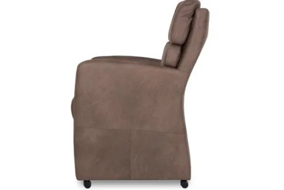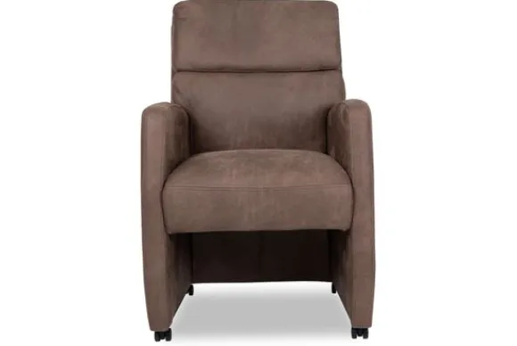 Eetkamerstoel Reid van het merk Donc is verkrijgbaar in alle kleuren. Tevens is de stoel leverbaar in stof, kunstleder en rundleder. Je kunt zelf kiezen of je deze stoel wilt met of zonder handgreep. De eetkamerstoel heeft een robuust uiterlijk doordat de stoel aan drie van de vier kanten tot net boven de grond is doorgestoffeerd. Deze eetkamerstoel heeft wieltjes, zodat je de stoel makkelijk kunt verplaatsen en aanschuiven. Door de armleuningen biedt deze stoel extra comfort en kan er gezellig nagetafeld worden.