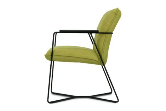 Eetkamerstoel Wouter van het merk Donc is een eetkamerstoel met armleuningen en houten armleggers. Het smalle metalen frame zorgt voor een open uitstraling aan de eettafel. De zitting en rug zijn afgewerkt met geknepen naden, wat zorgt voor een herkenbaar detail in het ontwerp.