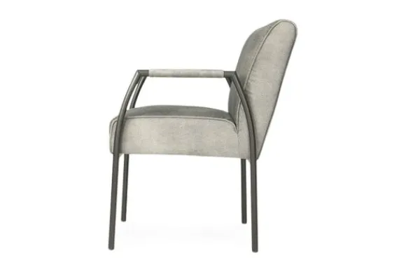 Deze eetkamerstoel wordt standaard uitgevoerd zonder wieltjes en met handgreep op de rugzijde. Deze handgreep kun je ook weglaten.