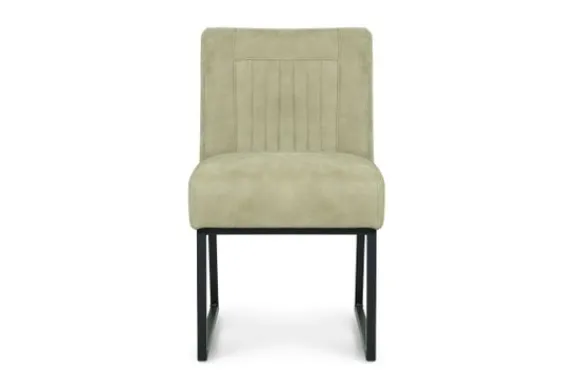 Eetkamerstoel Bullock van het merk Donc is beschikbaar in alle kleuren en in diverse materiaalsoorten zoals stof, kunstleder en rundleder. Deze eetkamerstoel is voorzien van zwart metalen poten, verticale banen in een kader in de rug en heeft geen armleuningen. De Bullock is ook beschikbaar met andere stiksels in de rug en met armleuningen. Deze stoel heeft een simpel, elegant design. Er zit een handgreep op de achterkant van de rugleuning, maar deze kun je ook weglaten.