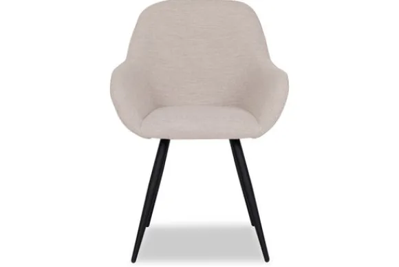 Deze stoel is uitgevoerd in naturel bouclé, een prachtig geweven stof waarbij de oppervlakte bestaat uit lusjes. Fender heeft een ronde zitting voorzien van elegante rondingen. De mooie ‘curve’ van de zitting naar de arm- en rugleuning geeft deze stoel ontzettend veel charme en comfort. De zwarte, naar buiten staande poten zorgen ervoor dat de stoel lekker stabiel op de grond staat en draagt daarnaast bij aan de leuke speelse touch.