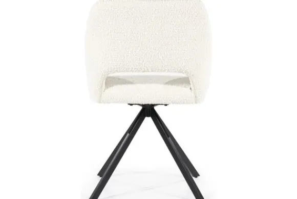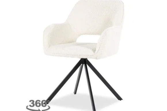 Eetkamerstoel Fabio beige 95837 van het merk Eleonora is beschikbaar in verschillende kleuren. Deze stoel is bekleed met een grove stof die je kunt schoonmaken met een droge doek. Deze stoel staat op een zwart metalen spinpoot, waardoor deze 360 graden draaibaar is. De rugleuning loopt vloeiend over tot armleuningen en heeft een opening onderin.