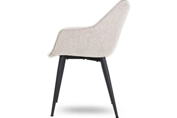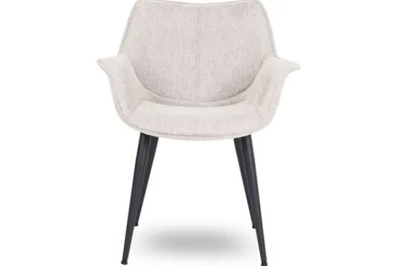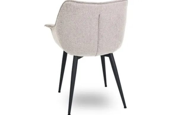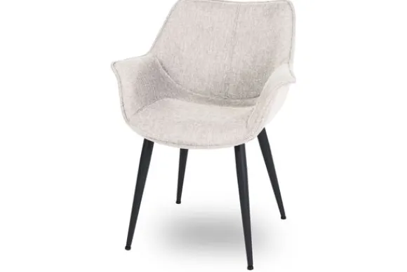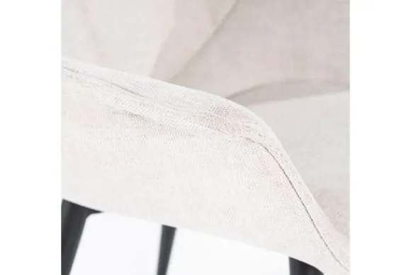Eetkamerstoel Sandy beige Houston 95843 van het merk Eleonora is beschikbaar in drie verschillende kleuren: beige, bruin en grijs. Deze stoel is bekleed met een stof die je kunt schoonmaken met de stofzuiger. Deze stoel is voorzien van zwart metalen poten. De rugleuning van de stoel loopt vloeiend over in uitlopende armleuningen. De stoel is afgewerkt met geknepen naden.
