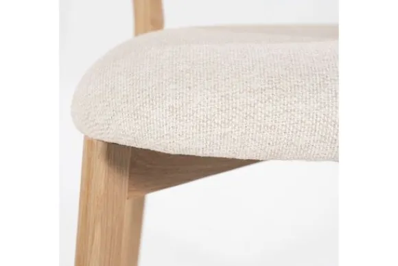 De zachte, neutrale bekleding in combinatie met de afgeronde rugleuning en het minimalistische design geeft Mikky een tijdloos karakter, geschikt voor zowel eetkamer als woonkamer.