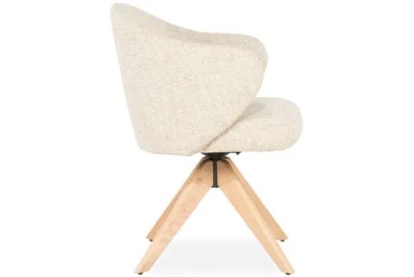 Wat deze uitvoering bijzonder maakt, is de massief eikenhouten poot in naturel tint. De houtnerf voegt een natuurlijk en rustgevend element toe aan het ontwerp, en zorgt voor een harmonieuze balans tussen Scandinavische eenvoud en hedendaags comfort. Dankzij de 180 graden draaifunctie combineert deze stoel functionaliteit met een speelse dynamiek.
